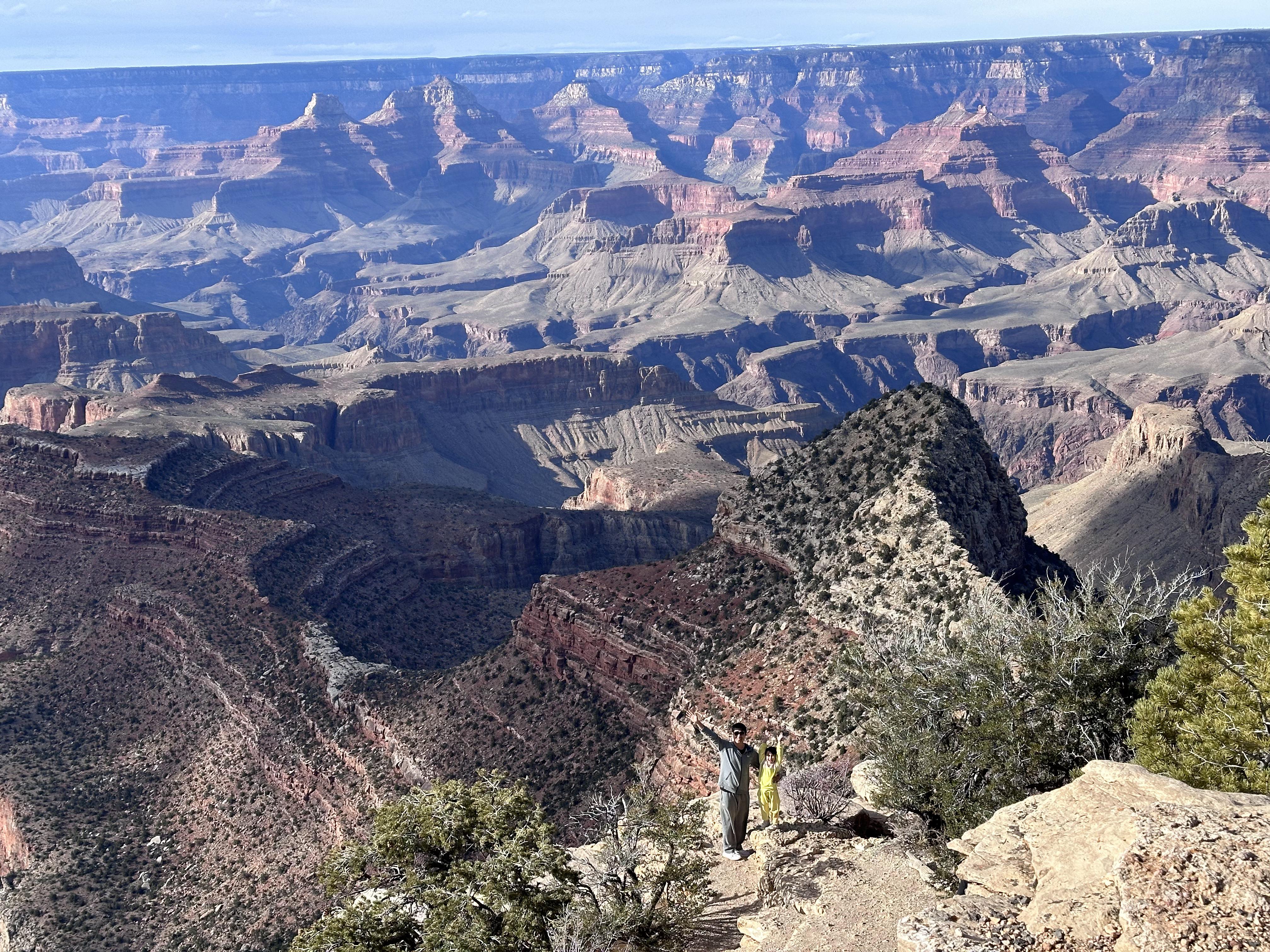 명불허전 그랜드캐년입니다. 이미 한 번 와보긴 했지만 다시 와도 좋네요. 풍경도 보고 사진을 찍을 수 있는 포인트들이 여기저기 있는데요. 대부분 차를 주차할 수 있는 곳과 포인트들이 가까워서 구경하기 편해요. 이게 풍경이라는 게 당연히 말로는 다 표현못하고 카메라로도 한계가 있어요. 제가 미술작품 같은 건 조예가 없어서 그런지 모나리자를 직접봐도 TV로 보는 것과 똑같다고 생각을 하거든요. 근데 자연경관은 어쩔수 없이 직접와서 보는게 맞는 것 같아요.